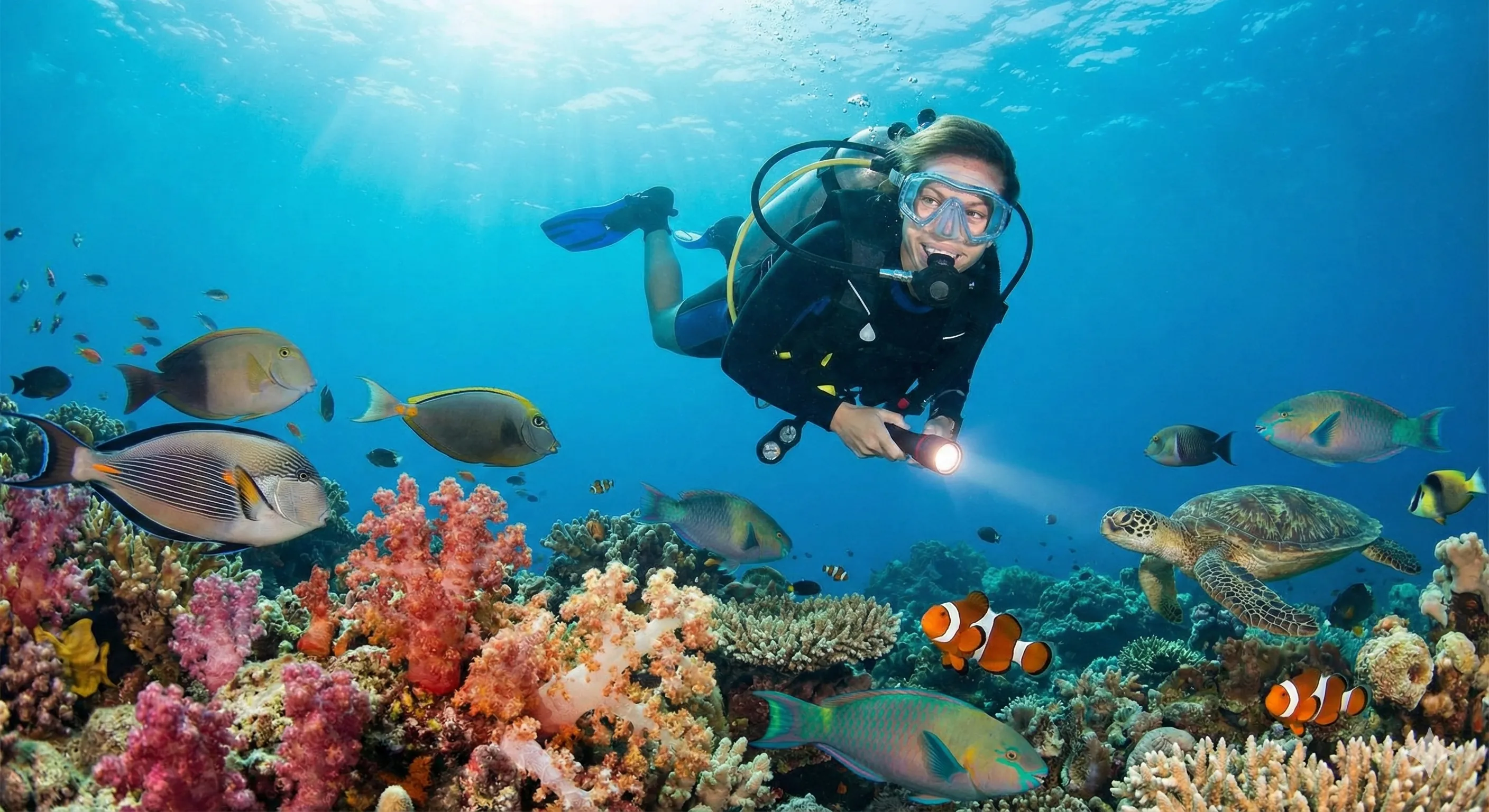 اكتشف عالم ما تحت الماء والشعاب المرجانية الملونة.